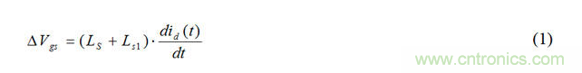 在諧振條件(ωL = 1/ωC)下,柵極和源極 電壓中生成的震蕩電壓遠(yuǎn)大于驅(qū)動(dòng)電壓。因諧振變化而產(chǎn)生的電壓振蕩與品質(zhì)因數(shù)成正比, Q(=ωL/R = 1/ωCR)。當(dāng)MOSFET關(guān)閉時(shí),漏極寄生電感(LD + Ld1)、柵極-漏極電容Cgd和柵極引線電感Lg1網(wǎng)絡(luò)造成柵極 振蕩電壓。如果柵極電阻 (RG-ext.+Rg_int.)極小,則Q變大。另外,LS兩端的壓降和Ls1源極雜散電感在柵極-源極電壓中產(chǎn)生振蕩,可用表達(dá)式(1)表示。寄生振蕩可能造成柵源極擊穿、不良EMI、較大開(kāi)關(guān)損耗、柵極控制失效,甚至可能造成MOSFET故障。