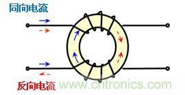 作為CAN和車載Ethernet這種差分接口的噪聲對策產(chǎn)品,一般會使用共模扼流圈。共模扼流圈的基本構(gòu)造如圖1所示:一個磁芯里面有兩根繞線。這兩個繞線對應(yīng)的逆向電流流過時磁芯里產(chǎn)生的磁通會相互反向抵消,而同向的電流流過時磁通會相互向同方向產(chǎn)生,因此阻抗較高。通過這種方式共模扼流圈可以通過相互反向的差分信號但是卻可以抑制同向傳輸?shù)墓材T肼暋?/div>