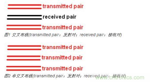 為了盡可能降低緊密耦合線(xiàn)對(duì)之間的串?dāng)_,微帶線(xiàn)采用收發(fā)交叉布線(xiàn)而帶狀線(xiàn)應(yīng)用收發(fā)非交叉布線(xiàn)是一個(gè)更好的選擇。