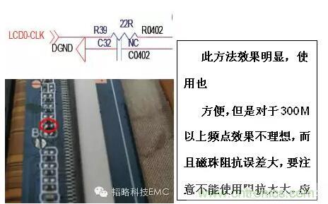 方法1:在屏?xí)r鐘上增加濾波電路,一般用RC濾波或加磁珠