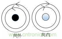 (2)當(dāng)有兩條彼此靠近且平行的導(dǎo)線,如下圖所示,其中一個導(dǎo)體的電流向外流出,另一個導(dǎo)體的電流向內(nèi)流入,如果流過這兩根導(dǎo)線的電流分別是信號電流和它的回流電流,那么這兩個電流是大小相等方向相反的,所以它們的磁場也是大小相等,而方向是相反的,因此能相互抵消。