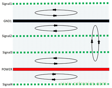 (1)此種結(jié)構(gòu),由于信號層與回流參考平面相鄰,S1和S2緊鄰地平面,有最佳的磁通抵消效果;