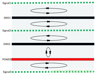 PCB疊層EMC規(guī)劃與設(shè)計思路的核心就是合理規(guī)劃信號回流路徑,盡可能減小信號從單板鏡像層的回流面積,使得磁通對消或最小化。