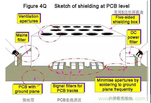 1、使導(dǎo)線及元器件盡量靠近一塊大的金屬板(這個(gè)金屬板不是指屏蔽體)