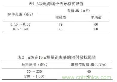 根據鐵路客運專線標準規(guī)定,傳導騷擾限值和輻射騷擾限值如表1、2所示。