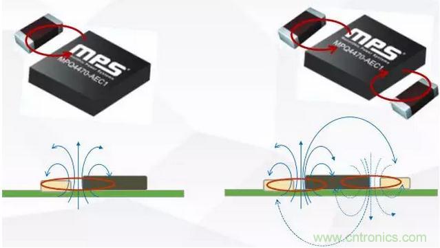 如圖7所示,對稱電容設(shè)計(jì)能明顯抵消磁場,如果電容集成到芯片內(nèi)部的話對傳導(dǎo)和輻射的高頻干擾都能起到極大的抑制作用,MPS的MPQ4491M就是一款高度集成的車載充電芯片方案,內(nèi)部集成了電容,具有良好的EMI性能。