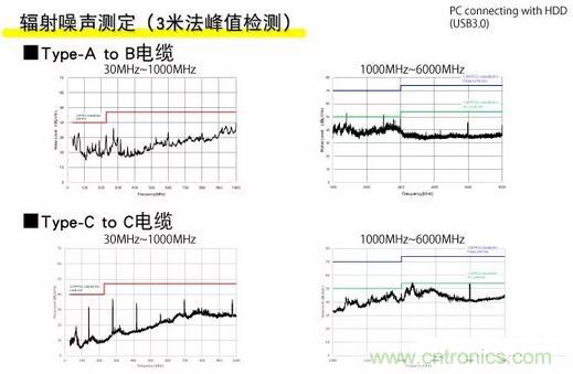 雖然這里使用TypeA-TypeB和TypeC-TypeC作為連接電纜,但兩種噪聲水平都低于不必要的輻射噪聲的調(diào)節(jié)值,并且沒有出現(xiàn)問題。