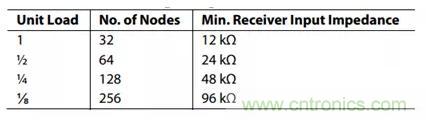 圖4:RS-485接收器的輸入阻抗和負(fù)載數(shù)量