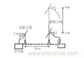 在10m暗室無(wú)測(cè)試桌的情況下,用信號(hào)源分別通過(guò)雙錐天線(xiàn)(頻率30~250MHz)和對(duì)數(shù)天線(xiàn)(頻率250~1000MHz)發(fā)射電磁波。用接收機(jī)和另一組雙錐天線(xiàn)和對(duì)數(shù)天線(xiàn)測(cè)得一組場(chǎng)地衰減數(shù)據(jù)。歸一化場(chǎng)地衰減的計(jì)算公式
