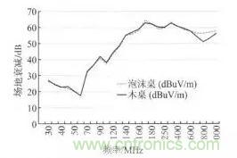 所以,當(dāng)電波暗室使用木桌或其他較大介電常數(shù)材質(zhì)制作的試驗(yàn)桌等輔助設(shè)施時(shí),會(huì)使場(chǎng)地衰減AN 增大而導(dǎo)致接收機(jī)測(cè)得的電場(chǎng)強(qiáng)度減小,使測(cè)試結(jié)果造成差異。試驗(yàn)桌等輔助設(shè)備是試驗(yàn)場(chǎng)地有效性中不可分割的一部分,因此建議,在選擇暗室輔助設(shè)施時(shí)選擇介電常數(shù)小的材質(zhì),并進(jìn)行場(chǎng)地衰減的測(cè)量比較,以保障各暗室測(cè)量結(jié)果的一致性。