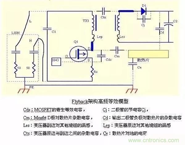 二、電路與EMC:(最熟悉的反激主拓?fù)洌纯措娐分心男╆P(guān)鍵地方蘊(yùn)含了EMC的機(jī)理)