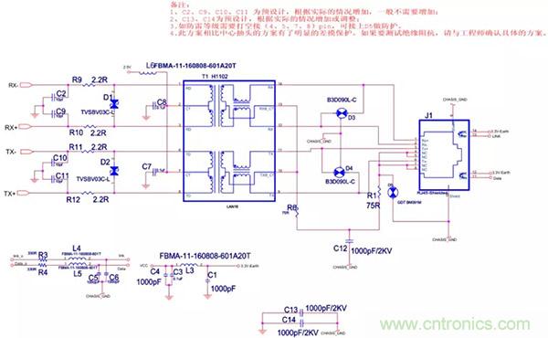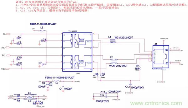 (1)以太網(wǎng)EMC(EMI)設(shè)計標(biāo)準(zhǔn)電路