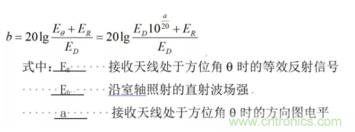 將接收天線轉(zhuǎn)到比最大電平低a(dB)的方位角q時,則所接收的直射信號Eq=ED10a/20。當反射信號與直射信號同相時合成場最大,這時以b表示: