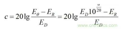 當反射信號與直射信號反相時合成場最小,這時以c表示: