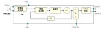 與晶體振蕩器相比,PLL合成器是一種更為復(fù)雜的系統(tǒng)時(shí)鐘源。其中,單從PLL來講,它通常由相頻檢測器(PFD)、電荷泵、低通濾波器 (LPF)和壓控振蕩器(VCO)等組成。而通用的PLL合成器時(shí)鐘產(chǎn)生器一般需要外部晶體以及放大反向器,并再通過完全集成的PLL和邏輯電路來完成。PLL合成器還可以實(shí)現(xiàn)其它更高的功能和特性,如晶體頻率倍頻、輸出相位校準(zhǔn)、多個(gè)輸出副本和對輸出進(jìn)行分頻等。圖3顯示 的是典型PLL合成器的結(jié)構(gòu)示意圖。