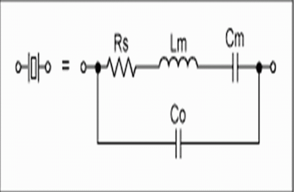 晶體的等效電路見圖1。圖中包括了動態(tài)元件:電阻Rs、電感Lm、電容Cm和并聯(lián)電容Co。這些動態(tài)元件決定了晶體的串聯(lián)諧振頻率和諧振器的Q值。并聯(lián)電容Co是晶體電極、管殼和引腿作用的結果。