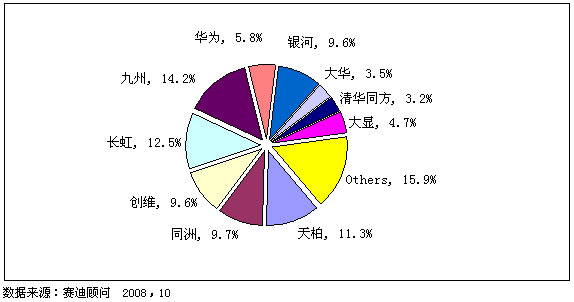 圖3 2008年前三季度中國數(shù)字電視機(jī)頂盒市場品牌銷售量結(jié)構(gòu)