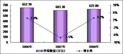 2009年3月5日,中國權(quán)威ICT研究與管理咨詢機構(gòu)賽迪顧問股份有限公司在“2009中國消費電子市場年會”上發(fā)布《2008-2009年中國便攜式電子學(xué)習(xí)產(chǎn)品市場研究年度報告》顯示:中國便攜式電子學(xué)習(xí)產(chǎn)品市場在經(jīng)歷了產(chǎn)品發(fā)展初期的市場混亂之后, 各品牌廠商更為注重產(chǎn)品的市場推廣和發(fā)展,中國便攜式電子學(xué)習(xí)產(chǎn)品市場逐漸走向成熟與理性。2008年,中國便攜式電子學(xué)習(xí)產(chǎn)品市場銷量為622.8萬臺,同比增長為3.2%;銷售額為44.0億元,較2007年同期增長0.5%。2008年全年,中國便攜式電子學(xué)習(xí)產(chǎn)品市場總體比較平穩(wěn),其中數(shù)碼學(xué)習(xí)機市場較2007年同期有所下滑,而電子詞典市場呈平穩(wěn)增長之勢。