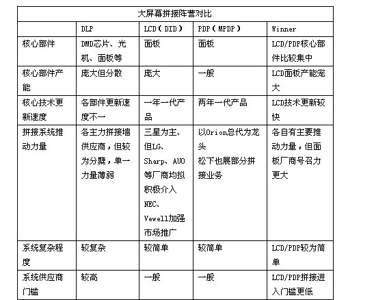 當然,正如前文所述,以DLP為代表的背投影拼接甚至MPDP也都在不斷改進和發(fā)展中,大屏幕拼接市場競爭格局雖然將隨LCD的興起而改變,但多元化依然是未來不變的主題。