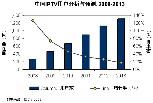 • IDC預(yù)計,2009年中國IPTV用戶將達(dá)到460萬,同比增長73.6%
