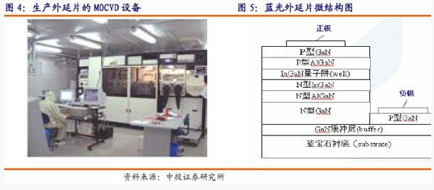 上游襯底廠商主要有HoneywELl公司、京瓷公司、三菱公司等,而MO源供應(yīng)廠商主要有EPICHEM公司、RohmHuss公司等。