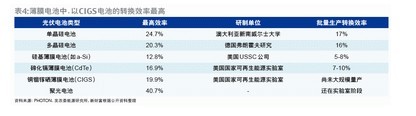 從成本來看,中投證券認(rèn)為,盡管晶體硅價格暴跌,CIGS仍具成本優(yōu)勢。首先,由于CIGS電池尚未達(dá)到量產(chǎn),通過成本細(xì)拆,參照工藝類似的第一太陽能的成本構(gòu)成(主要是設(shè)備折舊、玻璃、材料和人工等四項),在規(guī)模化效應(yīng)下,CIGS薄膜電池的成本約為1.07美元/瓦,已遠(yuǎn)低于目前的晶體硅電池成本。其次,CIGS電池采用相對廉價的玻璃為襯底,這樣所需的稀有元素耗損量大為減少;另外,CIGS電池的弱光效應(yīng)較好,對光照的要求降低,運(yùn)行時間遠(yuǎn)高于晶體硅電池。