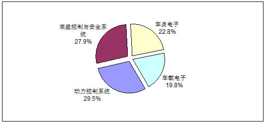 圖2 2008年中國汽車電子市場應(yīng)用結(jié)構(gòu)