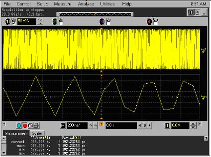 應(yīng)該指出的是,在力科示波器上,在默認(rèn)情況下會使SinX內(nèi)插失效,因此用戶不得不明確啟動SinX,才能獲得這個結(jié)果。在泰克示波器上,這個行為是默認(rèn)的行為。在泰克示波器上,避免這一行為的唯一途徑是在顯示設(shè)置中選擇"intensified samples"。
