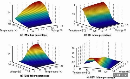 可用信息能夠估算出故障概率,卻無法提供實際故障數(shù)據(jù),這是實施可靠性工程的一大挑戰(zhàn)。一般來說,用上幾千小時去測試一個裝置的做法是不切實際的,所以我們通常無法得到一個元件或系統(tǒng)在實際壽命中的測試數(shù)據(jù)。新產(chǎn)品的可靠性數(shù)據(jù)往往等于零,然而這并不代表有關(guān)產(chǎn)品永遠(yuǎn)不會出現(xiàn)故障。雖然以更高溫度加快壽命測試或許能提供恰如其分的實驗數(shù)據(jù),不過該實驗前提包括了活化能量恒久不變的假設(shè),而在實際情況下,它是電壓和溫度的一個函數(shù)(圖1)。這限制了加快的壽命測試在預(yù)測可靠性方面的準(zhǔn)確度。因此,現(xiàn)場故障的監(jiān)察及反饋對提高產(chǎn)品可靠性的預(yù)測能力十分重要。