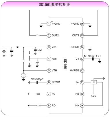 SD1561基于士蘭微電子自行研發(fā)的0.8微米全互補BCD工藝制造,工作電壓范圍為4.5V~16V,最大工作電流1A。電路內(nèi)置了同步整流功能并采用了DMOS管驅(qū)動,具有極低導(dǎo)通電阻和較高驅(qū)動效率,相同功率下,風(fēng)扇的轉(zhuǎn)速可以比其他同類電路提高10%以上;高效率和低表面溫度,使其更節(jié)能,更可靠。