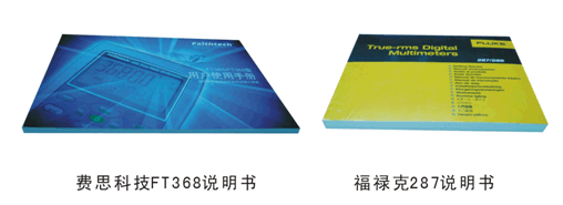 福祿克287里一個塑料袋也沒有,估計是本著環(huán)保理念,可是16國語言說明書厚厚一本,有用的只有1/16,看來理念不統(tǒng)一,但你可用來學語言。費思FT368手冊是中文,編寫很細很專業(yè)。