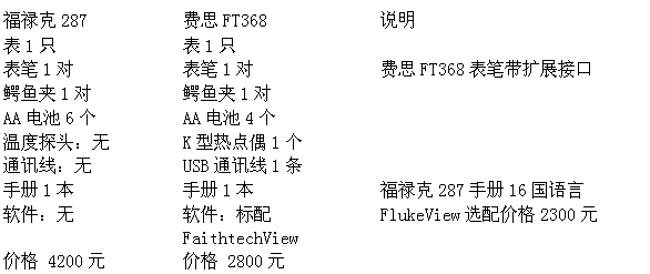費思FT368和福祿克Fluke287的比拼