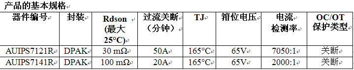 AUIPS7121R 和 AUIPS7141R 提供全面的保護功能,確保開關(guān)安全可靠。此外,新器件的過流關(guān)斷、過溫關(guān)斷和有源箝位電路功能都能確保在重復(fù)短路的情況下實現(xiàn)安全運行和保護。
