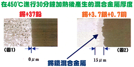 錫+鉛 焊錫所產(chǎn)生的混合金屬化合物會(huì)浮于溶槽表面,而且容易清潔。但是 錫+銅 焊錫所產(chǎn)生的混合金屬化合物卻會(huì)沈積并散布于溶槽內(nèi),影響波峰質(zhì)素。此外,溶槽的壽命周期也會(huì)因?yàn)殂~的分解物質(zhì)而大大降低。如果工場(chǎng)生產(chǎn)線主要屬于波峰焊接類型,那么更換溶槽的經(jīng)常性開(kāi)支便會(huì)大大提高。