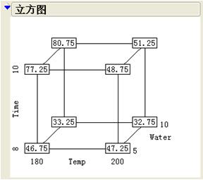 析因試驗主要選擇各因素構造的幾何體的頂點來完成(如上圖所示)。這樣的試驗構造,可以幫助我們確定對于指標的影響:是否存在主效應或者哪些主效應是顯著的,是否存在交互作用或者哪些交互作用是顯著的,試驗的最終是通過方差分析來檢定這些效應是否顯著,同時對以往的篩選試驗也是一個驗證。