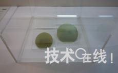 德國(guó)SiCrystal的最大股東進(jìn)入2009年以后變成了羅姆。但SiCrystal底板的銷(xiāo)售跟以前一樣,仍不僅限于羅姆。會(huì)場(chǎng)上,該公司的日本銷(xiāo)售代理店(Ceramic Forum)展出了4英寸底板等(圖4、5)。3英寸和4英寸底板的高端產(chǎn)品中微管密度保證低于3個(gè)/cm2。