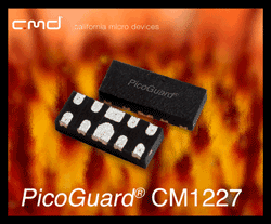 California Micro Devices推出超低電容的ESD器件CM1227,PicoGuard CM1227 ESD器件超低通道輸入電容為0.35pF,適合用于高速數(shù)字消費電子應用中。該器件可提供4個通道的±15kV接觸ESD保護,超過了IEC61000-4-2 4級標準。