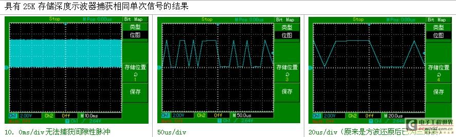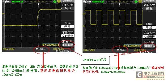 由此看來,在存儲深度一定的情況下,采樣率越高,采樣時間就越短。隨著信號的日益復雜,想要完整地呈現信號的全貌或是信號間的相對關系,單憑高采樣率無法實現,還需要長時間的采樣捕捉獲得較長的信號。傳統(tǒng)示波器,在此需求下,采樣率和采樣時間本身是矛盾的,既需要高采樣,又需要長采樣時間,在存儲深度一定且不大的情況下,是根本無法實現。經過創(chuàng)新性設計的SDS1000CM系列數字示波器,擁有同級別產品中最大的2Mpts存儲深度,完美地調和這兩者的矛盾。提高示波器的存儲深度可以間接提高示波器的采樣率。以一臺采樣率為1Gsa/s、存儲深度為20K的示波器為例來說,只要水平掃描速度在20ns/div以上時基,采樣速度就會急速下降。因為當需要測量較長時間的信號波形時,必然要求大的時基檔位,這就造成采樣率的下降,采樣率的下降可能會遺漏信號的細節(jié)勢必造成信號波形質量的下降。這時候就需要大的存儲深度來維持更高的采樣率來采樣測量。長存儲在保證獲取不失真的波形的同時又可以觀察更長時間的信號。