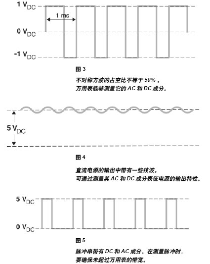 許多信號包含AC和DC兩種成份。例如不對稱方波就包含這兩種成份。許多聲頻信號中也含有由DC偏置電流產(chǎn)生的DC偏移,該電流用于驅(qū)動輸出晶體管。有些情況需要測量DC+AC電壓,而另一些情況可能只需要AC成份。對于這一聲頻例子,放大器增益就是把輸入AC電壓與輸出AC 電壓相比較。