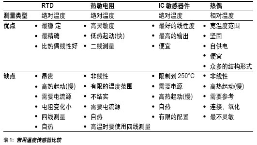 (RTD)、熱敏電阻、IC溫度感應(yīng)器件和熱偶。它們各有自己的優(yōu)點和缺點。