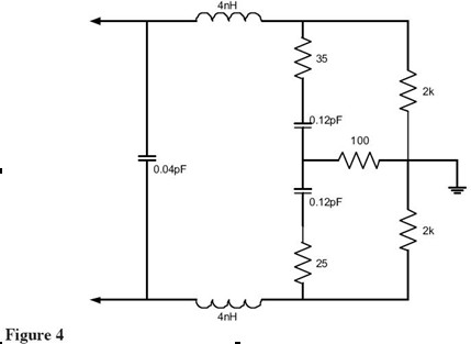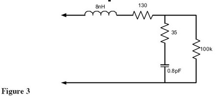 查看Figure 1中的等效電路,可以看到諧振頻率(1/(2*PI*sqrt(LC))給出)點(diǎn)的探頭輸入阻抗是0歐姆——完全消除了被測信號!最近一些制造商開始注意這個問題并設(shè)計具有更好輸入特性的探頭。Figure 3展示了這種探頭(Probe A)的等效電路。這是許多給出這個探頭精確依賴于尖端和地夾的等效負(fù)載模型之一。這個探頭還有一個諧振點(diǎn)大概是2GHz,該頻點(diǎn)的阻抗被電阻限制到大約165歐姆。