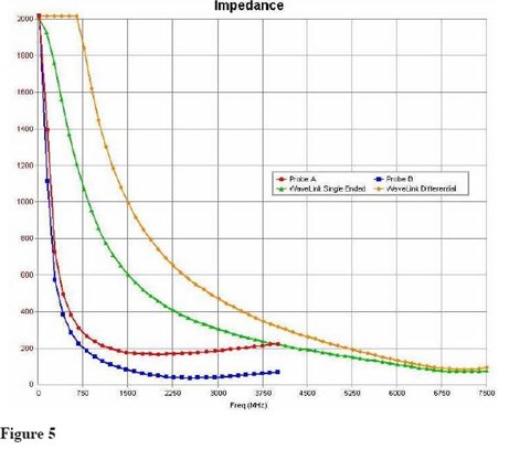 差分探頭具有固有的較低負(fù)載,現(xiàn)在的問題是增加到非常高的帶寬差分放大器(這里是7.5GHz)已被解決,這么一個探頭的所有的高頻測量是最好的。WaveLink系列探頭在這些任何已有的高頻探頭中具有最低的負(fù)載,提供了測試信號的最低失真。