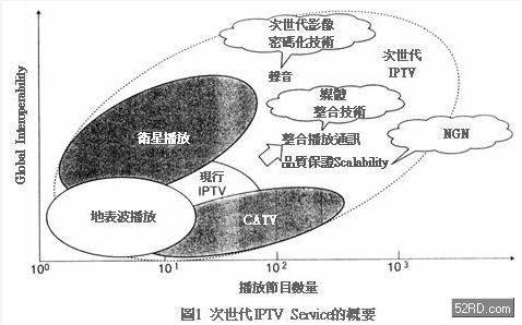 次世代IPTV服務(wù)針對(duì)各影像傳送服務(wù),擴(kuò)大高品質(zhì)(從SDTV一直到HDTV)與擴(kuò)大數(shù)量龐大的節(jié)目服務(wù)區(qū)(servicearea)管理,對(duì)多數(shù)加入者提供更經(jīng)濟(jì)的節(jié)目傳輸效益(圖1)。