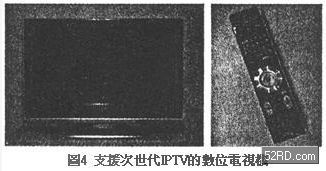上述整合技術(shù)透過(guò)終端的共通化,可以實(shí)現(xiàn)系統(tǒng)的經(jīng)濟(jì)化要求。圖3是播放與模組共通化的收訊機(jī)結(jié)構(gòu)范例;圖4是支援次世代IPTV的數(shù)字電視機(jī)的實(shí)際外觀,它不需要傳統(tǒng)STB就能夠提供IPTV服務(wù)。
