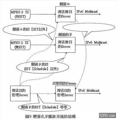 等單一泛用伺服機(jī)進(jìn)行通訊系統(tǒng)處理。由于今后播放業(yè)者可能會(huì)以IP播放服務(wù)提供各種影像內(nèi)容,一般認(rèn)為輸入至IP播放設(shè)備的影像source,可能會(huì)與SI已經(jīng)被多重成為播放方式準(zhǔn)則物,或是還未被多重化的東西混雜。