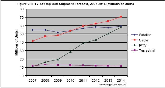 - 預(yù)計(jì)2014年銷往IPTV市場的機(jī)頂盒將增長到5800萬臺(tái)