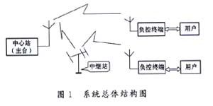 (2)無線通信系統(tǒng),包括架在中心站的天線和用戶處的小型天線以及用于信號(hào)轉(zhuǎn)發(fā)的中繼站。