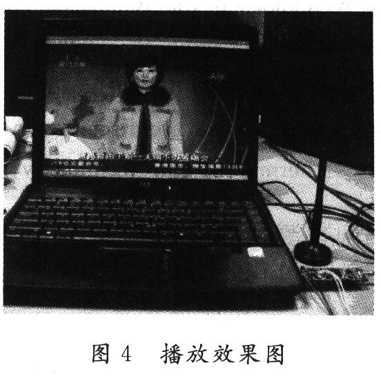 實驗結(jié)果表明:無論在靜止和運動狀態(tài)下,整個系統(tǒng)長時間工作穩(wěn)定,體積小,功耗低,接收效果好,誤碼率低,音視頻同步,節(jié)目播放清晰流暢,頻道切換小于1s,達(dá)到了設(shè)計要求。播放效果如圖4所示,播放頻道為廈門衛(wèi)視,圖中右下腳為USB數(shù)字電視接收棒及配套天線。