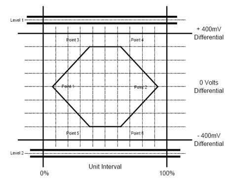本次測試將主要驗證產(chǎn)品上兩個USB高速主機接口的眼圖。對于USB2.0物理層的眼圖測試,USB IF在USB2.0 SPEC中有著明確的眼圖模板定義如下: