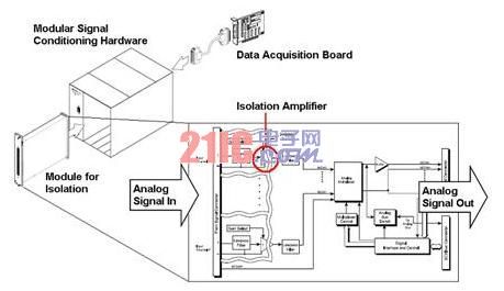 圖8在靈活的信號(hào)調(diào)理硬件中使用隔離放大器